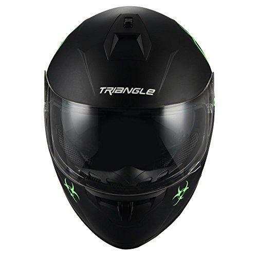 “Biohazard” Full Face Matte Green Dual Visor Street Bike Motorcycle Helmet by Triangle [DOT] (Small)