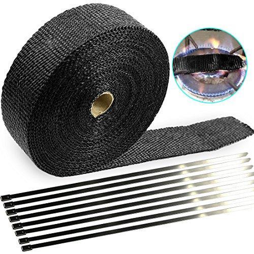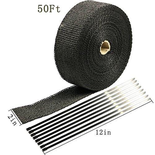 Exhaust Wrap 2" x 50 Ft Exhaust Heat Wrap Tape Header Glassfiber Wrap Kit for Automotive Motorcycle with 8 Stainless Ties (Black)