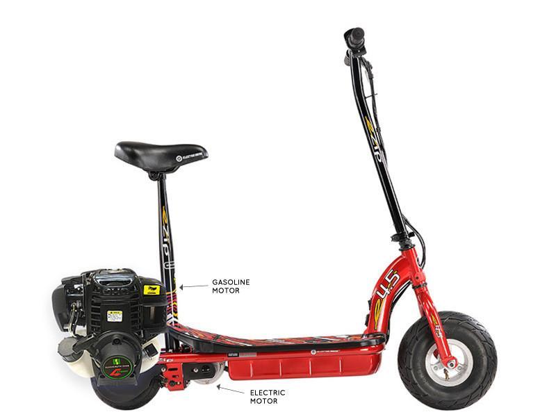 This product comes with the complete eZip 4.5 Electric Scooter and the 4-Stroke Gas Conversion Kit. With this conversion kit, you can switch from electric powered to gas powered or vice versa with ease. Easy to install, very reliable and very affordable.