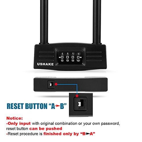 Heavy Duty U Lock, UShake Bike Bicycles Motorcycles Combination Lock Heavy Duty Combo Gate Lock for Anti Theft