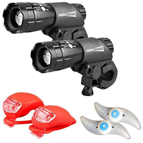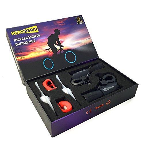 HeroBeam Bike Lights Double Set - The Ultimate Lighting and Safety Pack of Super Bright Front Bicycle Lights, Tail Lights and Wheel Lights - 5 Year Warranty