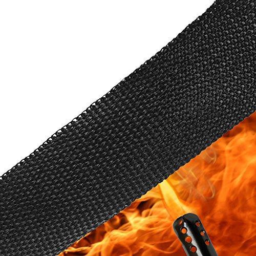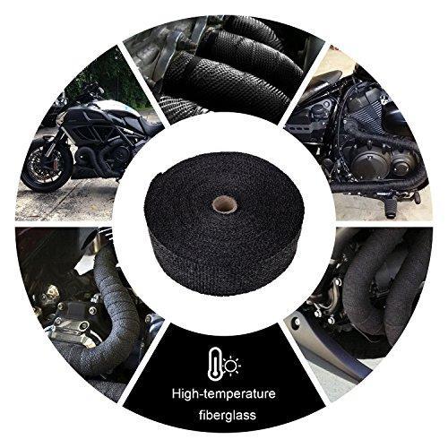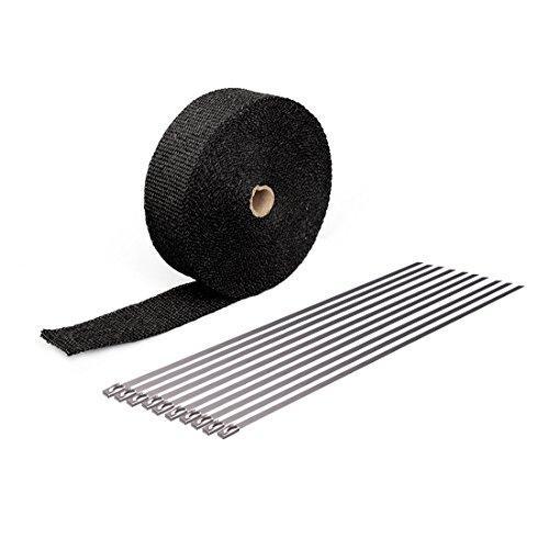 100% fiberglass Color will not change below 550℃ (1000°F) Includes 6 stainless steel zip ties 1 Roll black color measuring 2 inch wide X 1/16 Inch thick X 50 foot long roll Thousands of uses from covering racing exhausts to motorcycles to heavy duty equipment Easy to work with and very durable