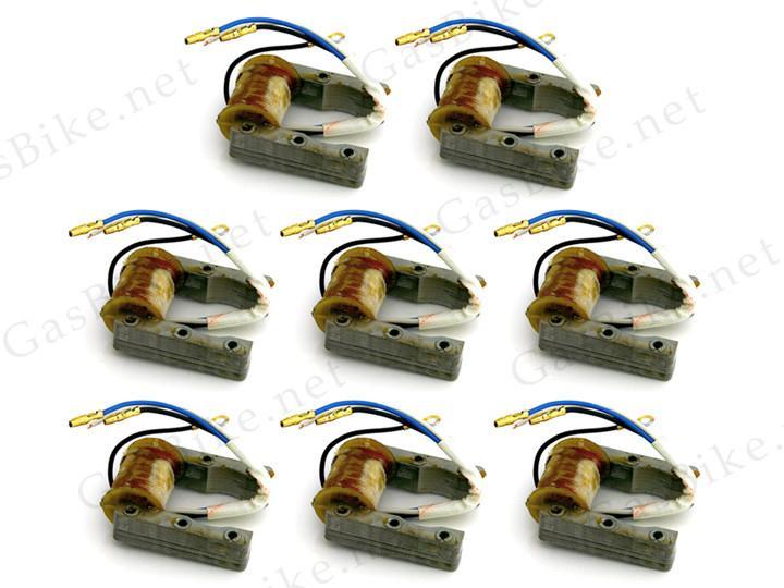 The magneto generates the voltage to the CDI. The magneto magnet (sold separately) spins in the middle of the magneto to generate the charge. The 2 wires off the magneto directly connects to the CDI, Blue to blue and black to black.
